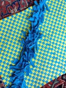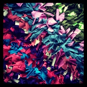 Took two placemats, sewed them together, cut up lots of t-shirts and voila, a new rug for the orange