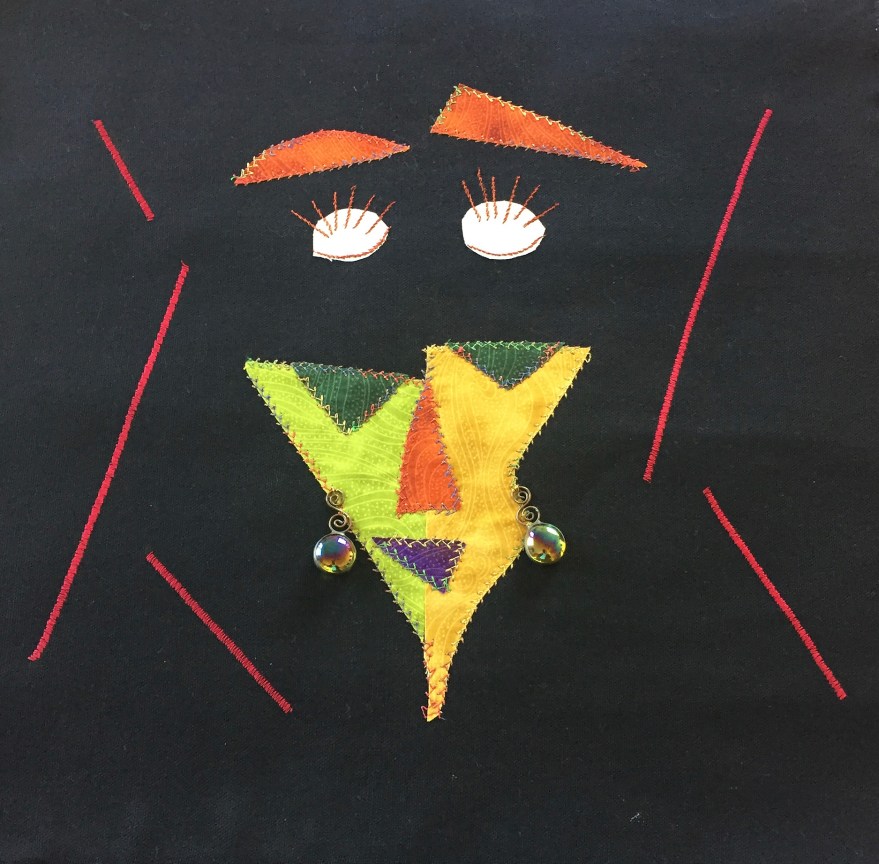 Fabric and earrings Inspired by a glass art piece by Barbara Shulman Kirwin.