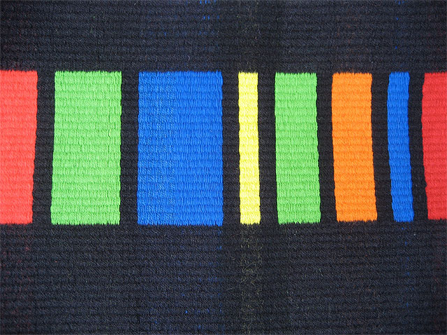 2’x3’ all wool rug for a private collection. This piece was part of a challenge where a glass artist, a quilter and the weaver “copied” each other in their separate media. (In a private collection.)