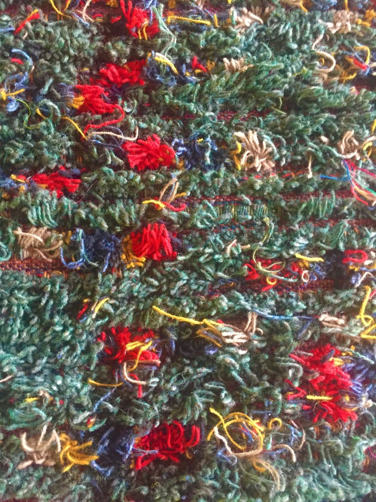 Fluffy 25”x42” Wool rug woven from Pendleton factory selvages.