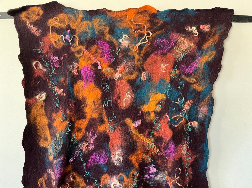 Pandemonium PANDEMONIUMFelted wool with silk and novelty yarn accents. NFS Posted in Fabric PaintingsTagged Featured