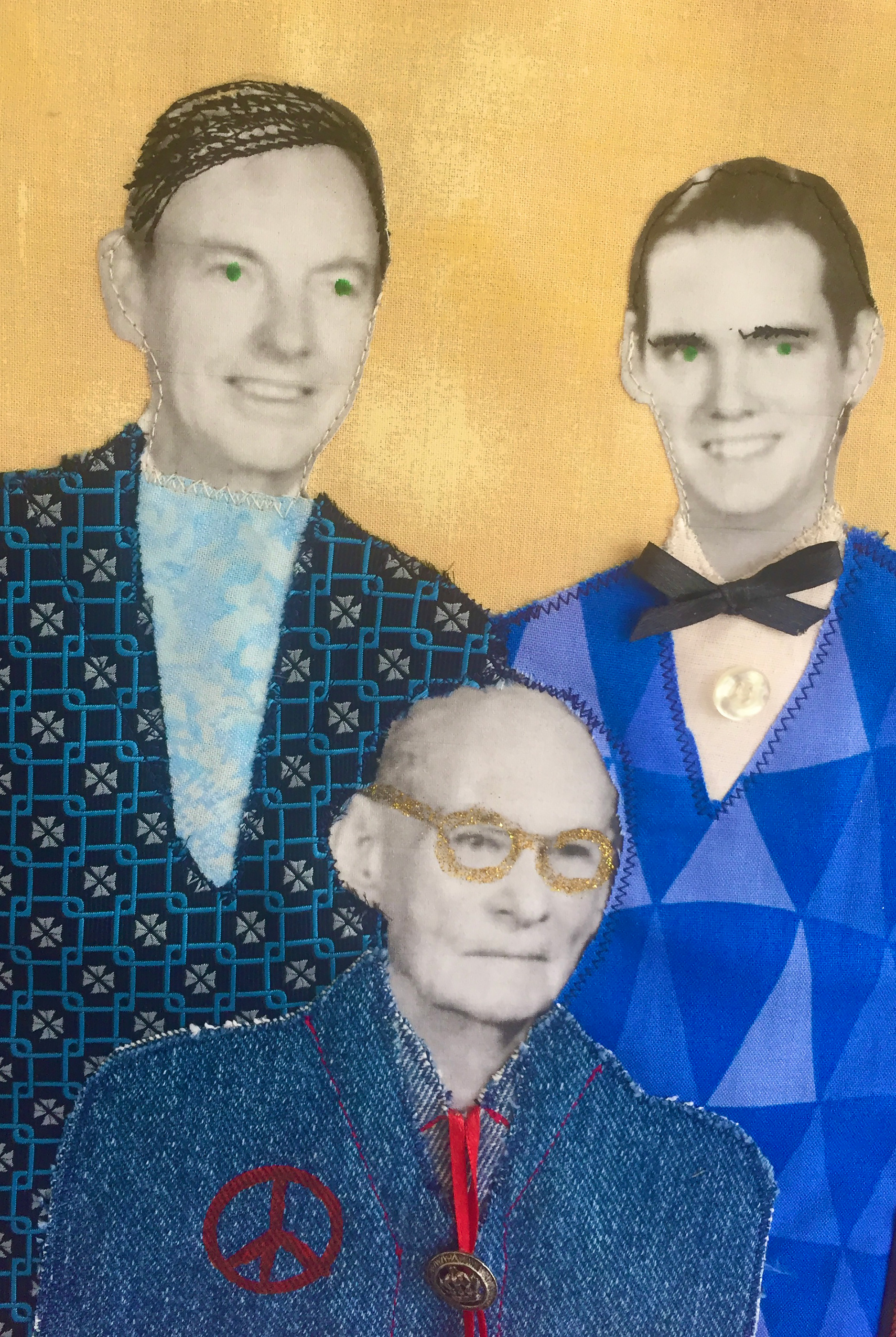 Photo transfer, stitched and embellished Three generations of the men in my family