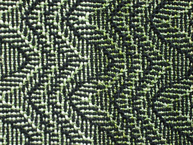 Kimono style coat in shadow weave with some glitz. This is a challenging style of weaving that produces some intestine effects. Property of the artist who wears it once a year.